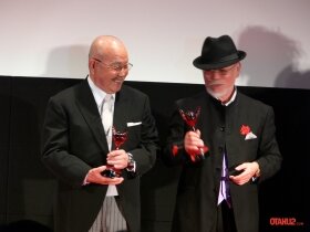 These classics gave the audience quite a show, especially Utsumi, who took the stage sporting a smart white goatee, a black gangster fedora and a purple vest. Holding his trophy up high, he called for people everywhere to support seiyuu, and then bowed out with a thunderous "Thank you!" in his best Raoh voice. He quipped with Yamadera Koichi, also in rare form as he accepted the prestigious Tomiyama Kei Award for expanding the profile of seiyuu.
