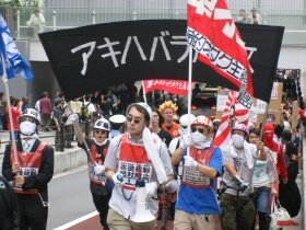 「アキハバラ開放」。短絡的なモットーでありながら、その言葉を信じた500人は2008年6月29日に秋葉原で集まり、デモを行なった。リーダーの「シュウちゃん」は再開発以前の秋葉原について熱く話した。彼によると、秋葉原は特別な場所なので疎外された人でも受け入れる。夢の居場所、ということだ。彼の言葉と行動はマスコミに完全に無視された。[80]森川などの秋葉原の若いオタクを懐疑的に思う人も、アキハバラ開放デモを無意味な見せ物として却下した。[81]結局、多くの秋葉原オタクと同様にシュウちゃんと彼の行動の形跡はイメージに過ぎない。