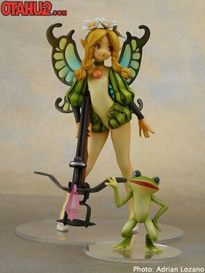 Yamato Toys invited us over their Akihabara office to take a sneak peek of their Story Image Figure Extra of Mercedes from ATLUS's RPG game Odin Sphere. We set up a photo shoot with their paint master of the young Fairy Queen Mercedes and the former Prince of Valentine Ingway in cursed frog form. These two figures were sculpted by Makoto Kobayashi who is a very well know sculptor in the resin kit and figure realm. Yamamto has previously released several PVC figures of his works including Honey and Clover, and Kuma-san he also has Wonder Show Case and May Fair 2005 to his credit as well.